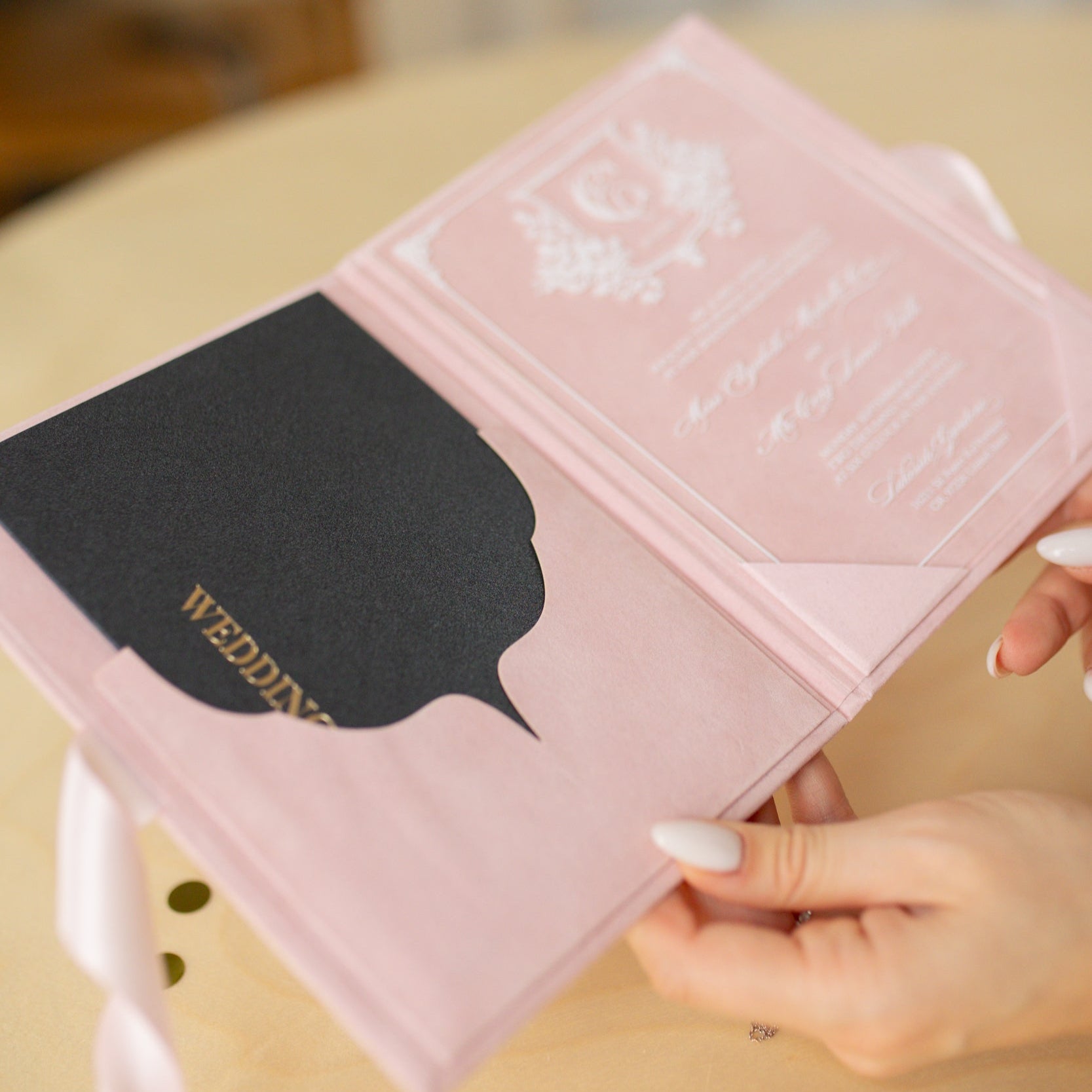 ♥ Velvet Pocket Folded Folio Wedding Invitation | PocketFold Set Invitation | Book Cover Invite with RSVP | Velvet Hardcover | Gold Foil Crest