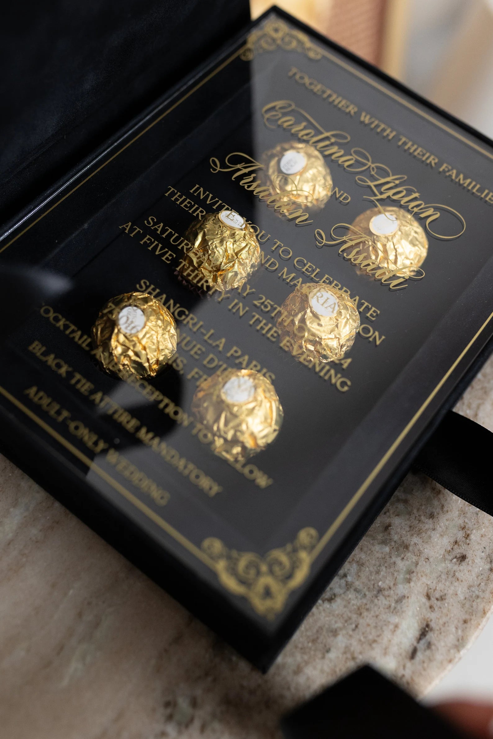 ♥ Wedding Invitation Box With Space For Sweets | Invitation With Flavor | Acrylic Invitation | Ferrero Rocher Gift Set | Chocolate Gift Box